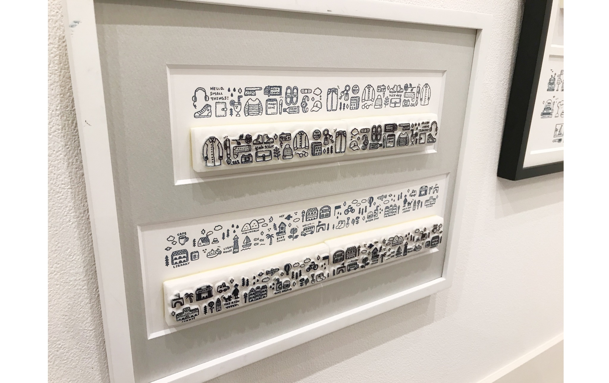 A.ついついじっくり眺めてしまうような、ちいさなものたちを描くことです。消しゴムはんこを彫るときのこだわりは、あえて刃先を揺らしながら彫ることで線のバランスを大事にしています。