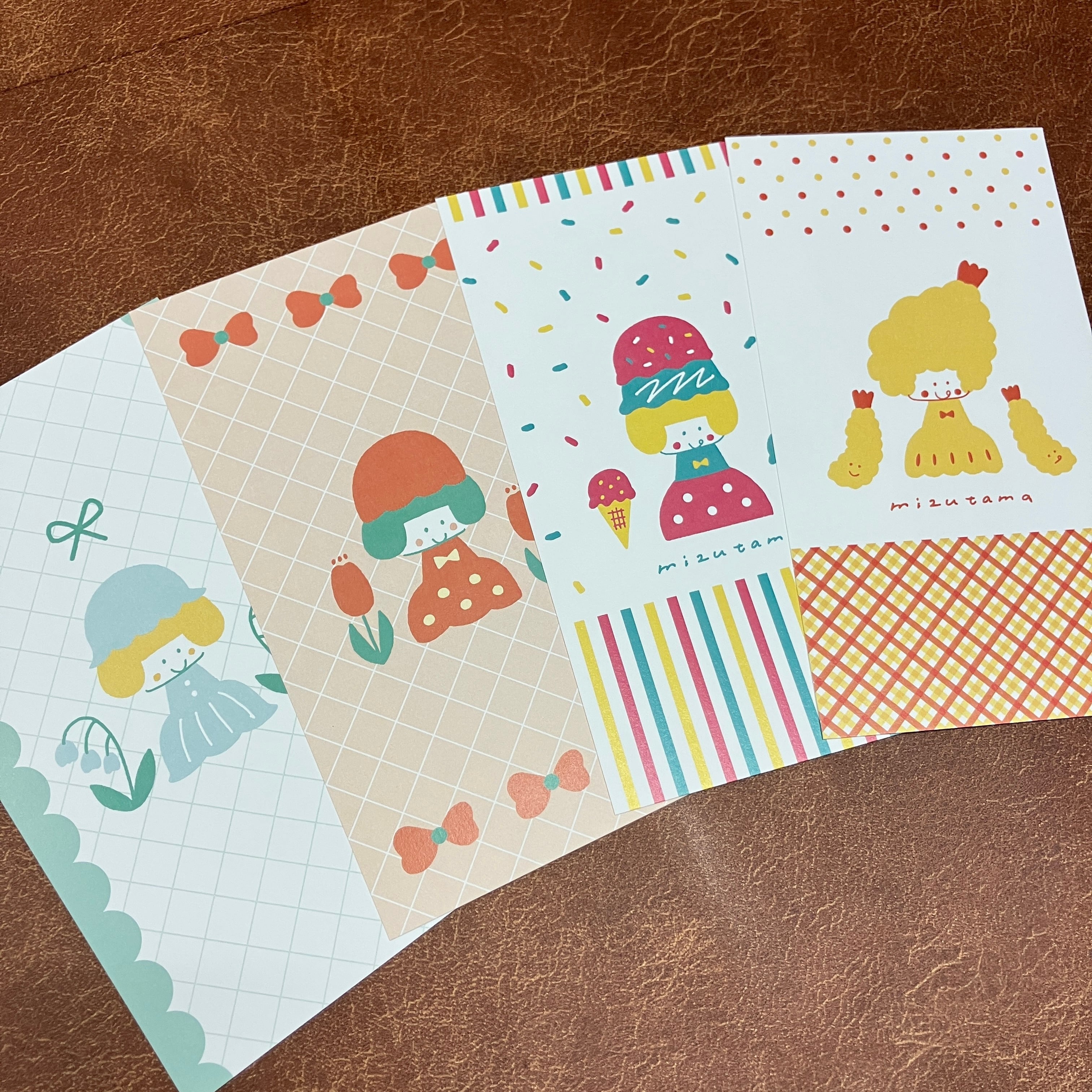 mizutamaさんデザインのフラワーシリーズとエビフライちゃん、アイスちゃんのイラストカードセット。