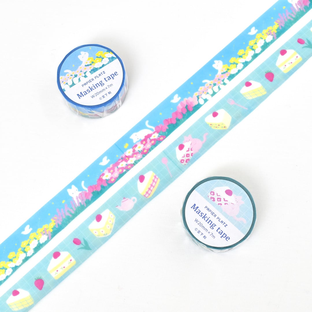 イラストレーター宮下和さんデザインのマスキングテープです。 サイズ:20mm×7m 重量:15g 丸天産業製 MADE IN JAPAN
