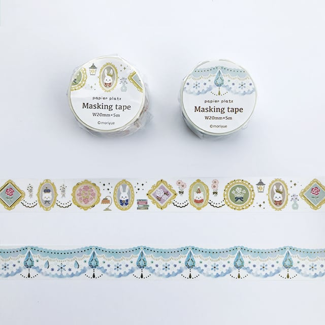 イラストレーターmoriyueさんデザインのマスキングテープ。キラキラの金箔入り。 20mm×5m 丸天産業製 MADE IN JAPAN 重量:15g