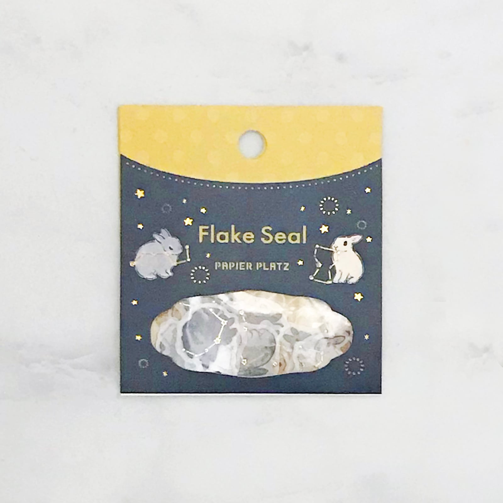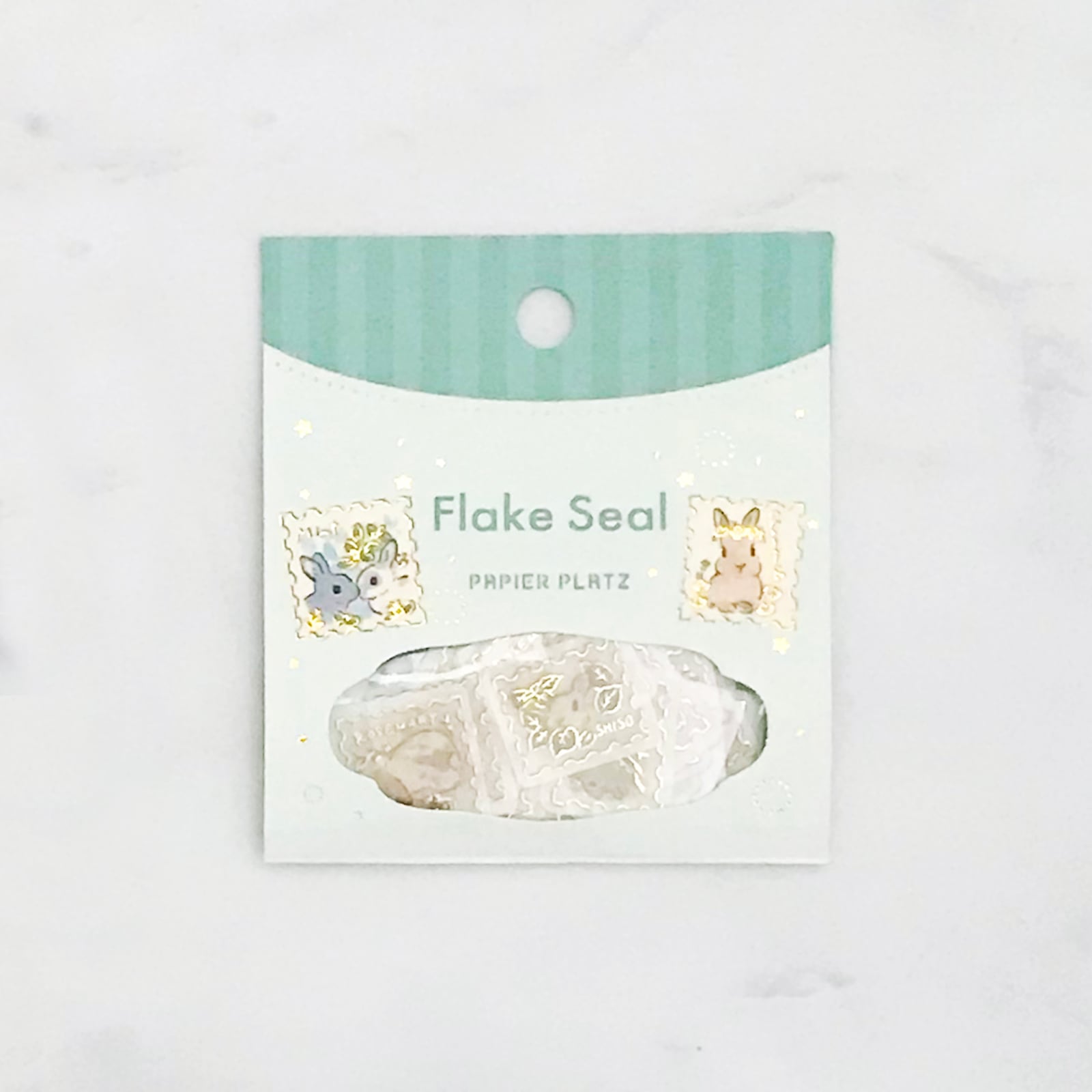 うさぎのイラストレーターでお馴染み、森山標子さんの金箔入りフレークシールです。