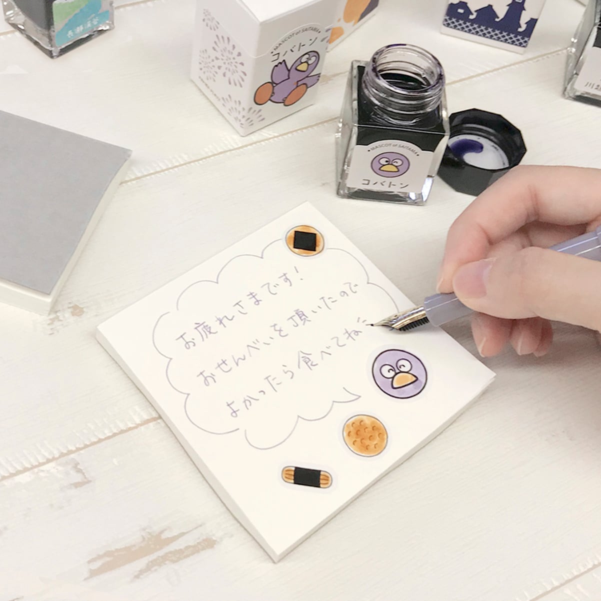 川越は全国でも珍しい黒い蔵造りの街並みが特徴で、古来より小江戸川越として栄えてきました。この歴史情緒あふれる街を歩くと、まるで一昔前にタイムスリップをしたような気分を体験できます。この川越の街が持つ“江戸の粋”をインクで再現しました。