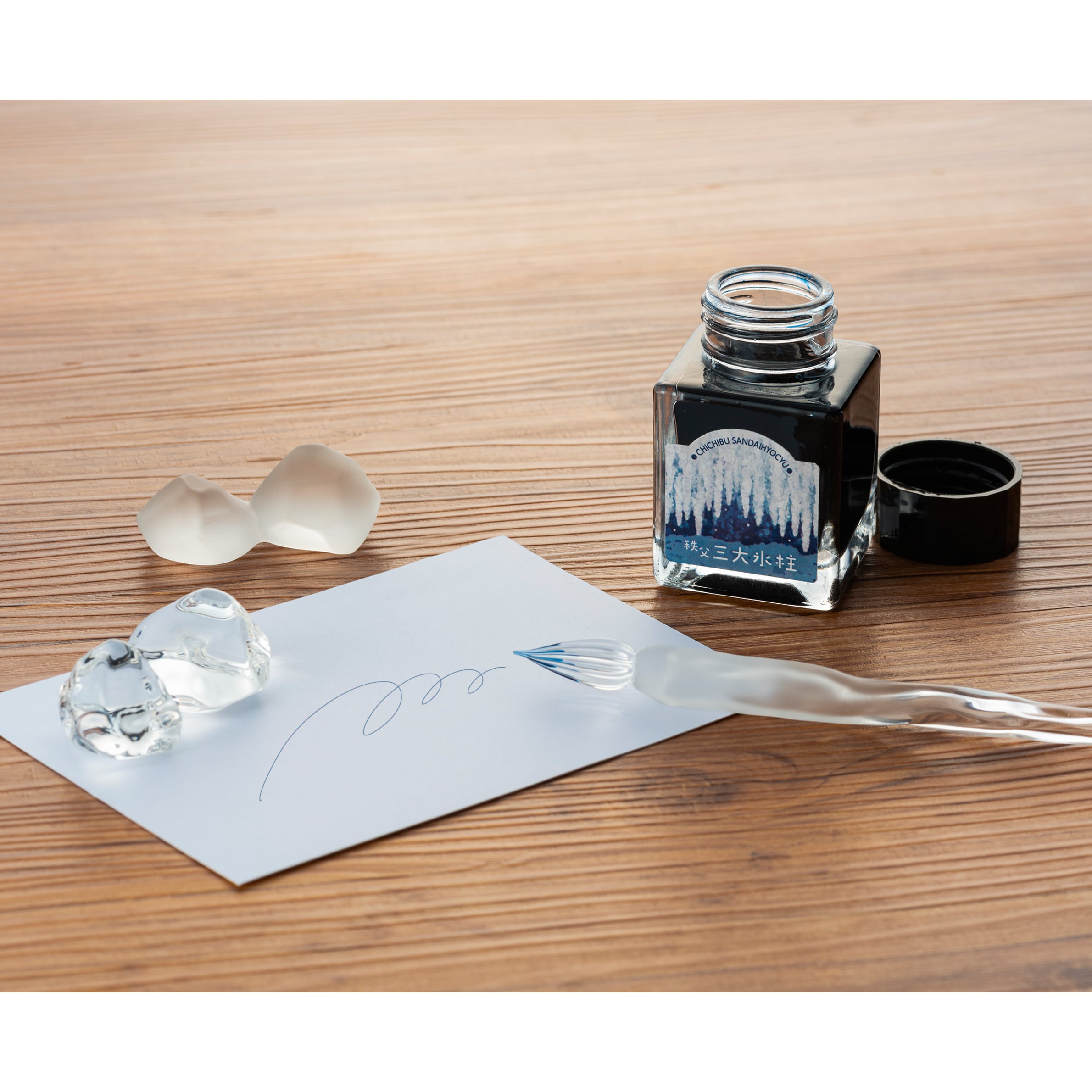 氷柱のガラスペンと一緒に使うとより氷の世界観が広がりますが、お手持ちのガラスペンとも非常に相性良く馴染みます。