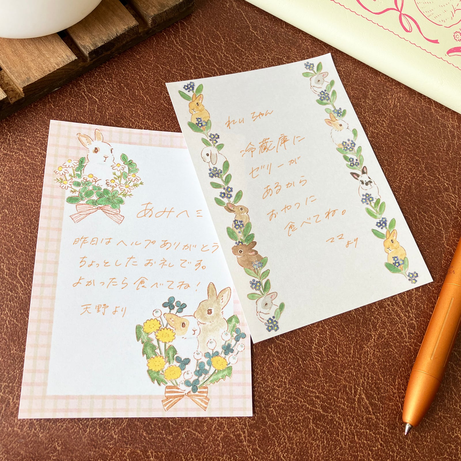 可愛いうさぎのイラストで人気のイラストレーター森山標子さんデザインのメモ帳。